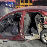 LANCASTER COUNTY, PA (March 13, 2025) —— A school bus and car wrecked this morning, demolishing the car.