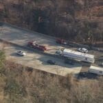 Officials reported that the tractor trailer crashed off the eastbound lanes, blocking Chester Road. A chain reaction was caused when vehicles failed to stop for the obstruction.