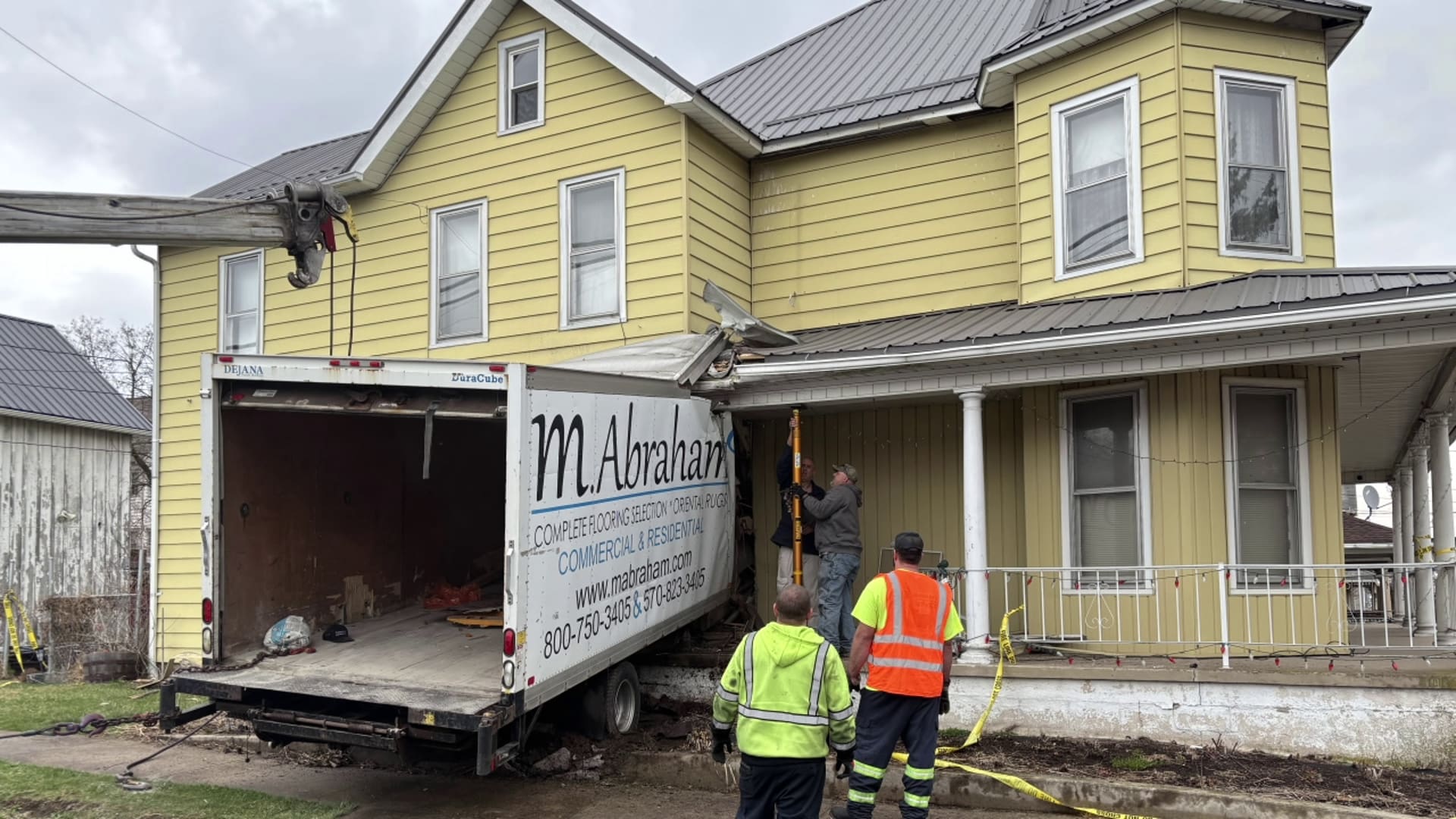 A flooring truck went through the side of a home along Broad Street in West Milton. Emergency crews were dispatched around 9:40 a.m.
